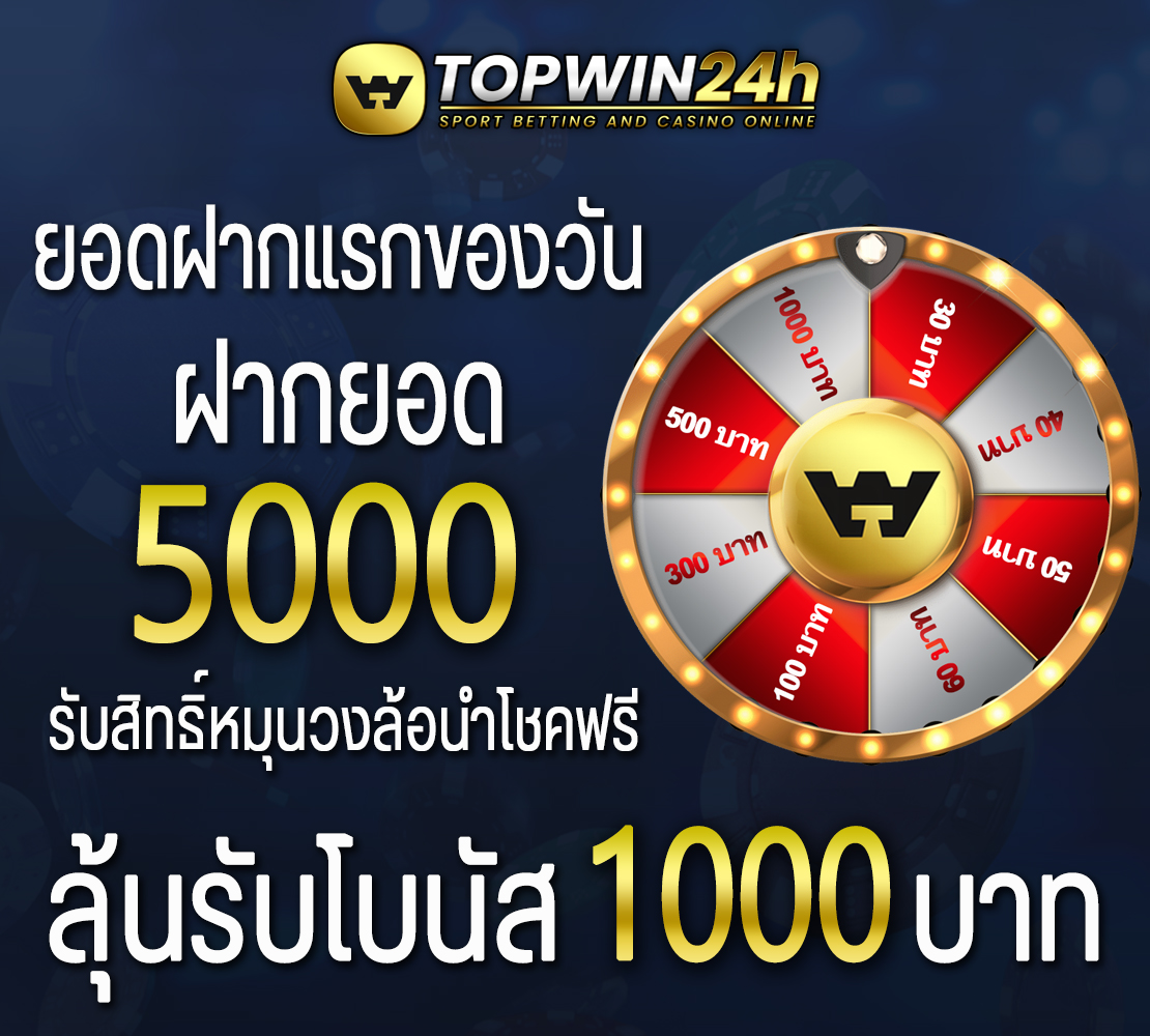 - ฝากแรกของวัน ฝากยอด 5,000 บาทขึ้นไป รับสิทธิ์หมุนวงล้อนำโชคฟรี ลุ้นโบนัสสูงสุด 1,000 บาท